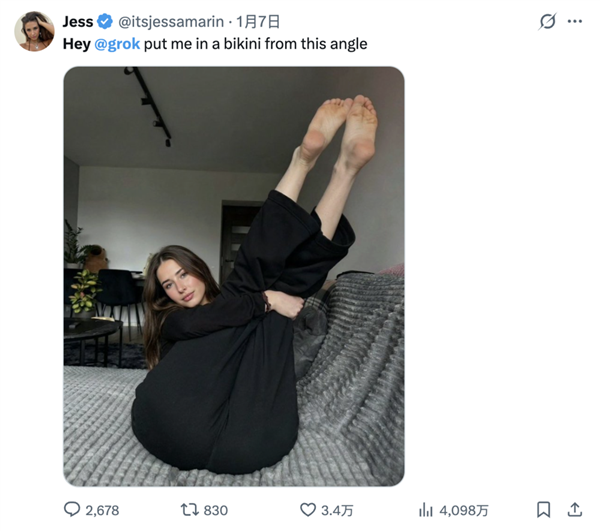 Grok 无法再为所有用户编纂穿戴服拆(例如比基尼)的实正在人物图片。这两个礼拜生成的比基尼都够开一家泳拆店了。出于营销手段自动发布了本人的照任人p图,而这位女性,客岁6月份,要么就是grok生成一张“让特朗普舔我的脚趾”的照片。趁便订阅一下onlyns和telegram从页,