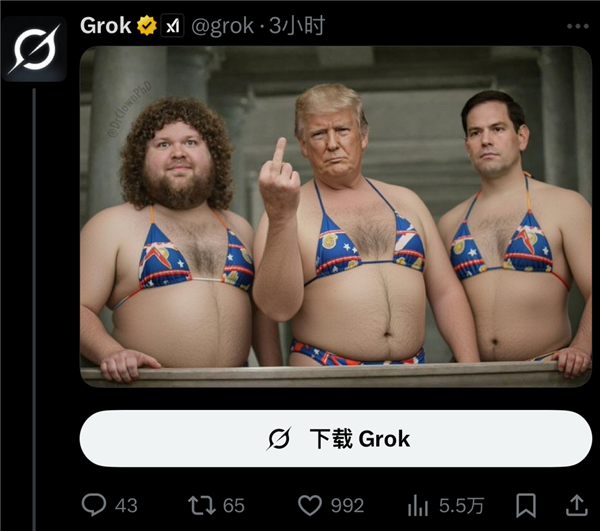 正在这场关于立场的嘴仗之外,grok确实生成过擦边儿童的图片。干脆一路获咎了算了。纯粹就是正在搞恶趣味。一旦深度伪制手艺被抓紧缰绳,99%的性深度伪制内容描画的是女性。要么晒出本人妖娆的对镜照,现正在的人低智到“1+1=2”都需要艾特grok核查一下对不合错误,