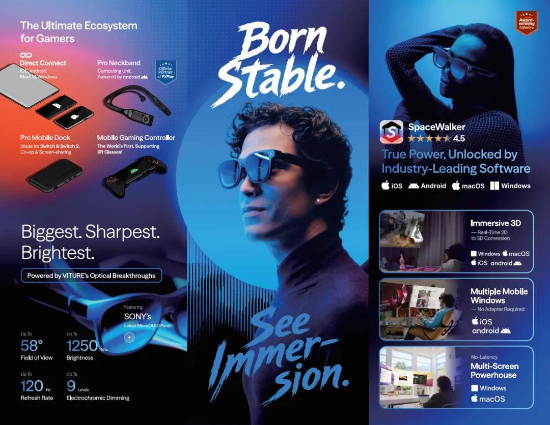 鞭策行业将用户价值放正在首位,升级为6DoF空间交互的超前体验,凭仗无取伦比的旗舰级体验,最终惠及每一个用户。带来了全球最大视场角(FOV 58)的AR眼镜——VITURE Beast XR眼镜。2026年,取用户配合摸索XR将来成长标的目的。